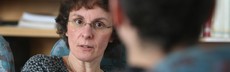 Eine Sozialpädagogin ist während der Schulzeit mit der Schulsozialarbeit betraut.