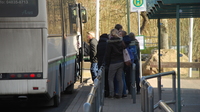 Eine Bushaltestelle befindet sich auf dem Schulgelände.