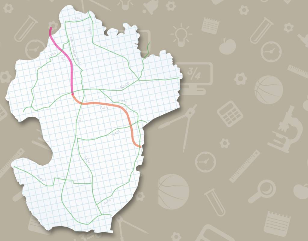 Bushaltestellen sind in der Nähe der Schule gelegen.